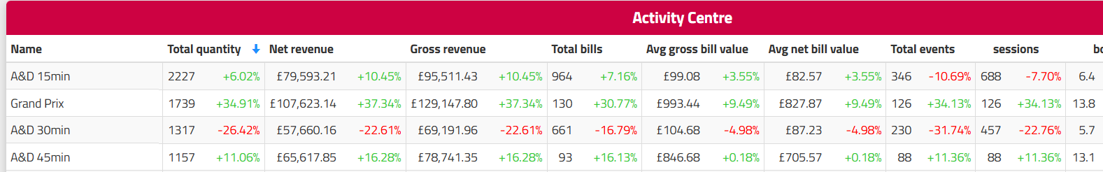 Use the Revenue report to track all money taken across your business, including bookings and non-activity bills.